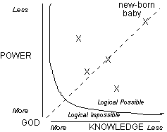 Malcolm Burn has the reciprocals of Power & Knowledge on his axes, though I don’t think the mathematics should be pressed too far in this obscure subject. I did feel that his argument depended on God being locked in time with his foreknowledge rather than being outside of spacetime, in the Augustinian sense. God must be allowed to know a manifold of possible futures depending on his use of omnipotence. I do think, though, that God is logically incapable of affecting the past.